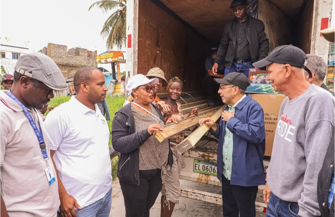 El Administrador General del Instituto de Auxilios (INAVI), Dr. Elsido Diaz Bueno, entrego materiales de construcción y enseres del hogar a familias de Los Guaricanos, en el Municipio Santo Domingo Norte, cuyas casas fueron afectadas por las lluvias que ha dejado a su paso la tormenta tropical Melissa.